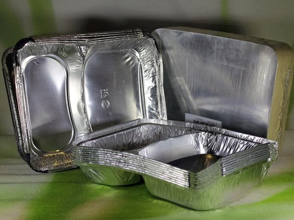 Alu Schale 2 geteilt 100 Stück ( mit Deckel) |